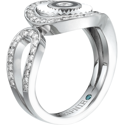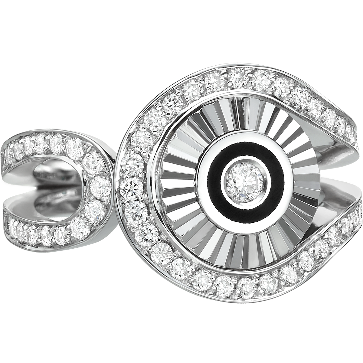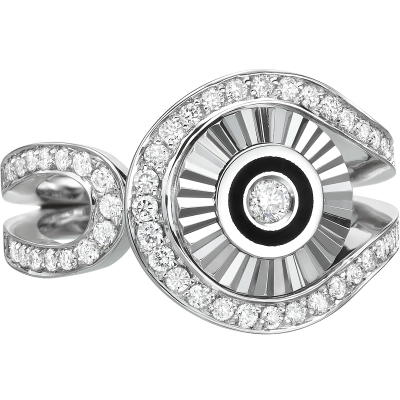 18K WHITE GOLD & BLACK ENAMEL RING