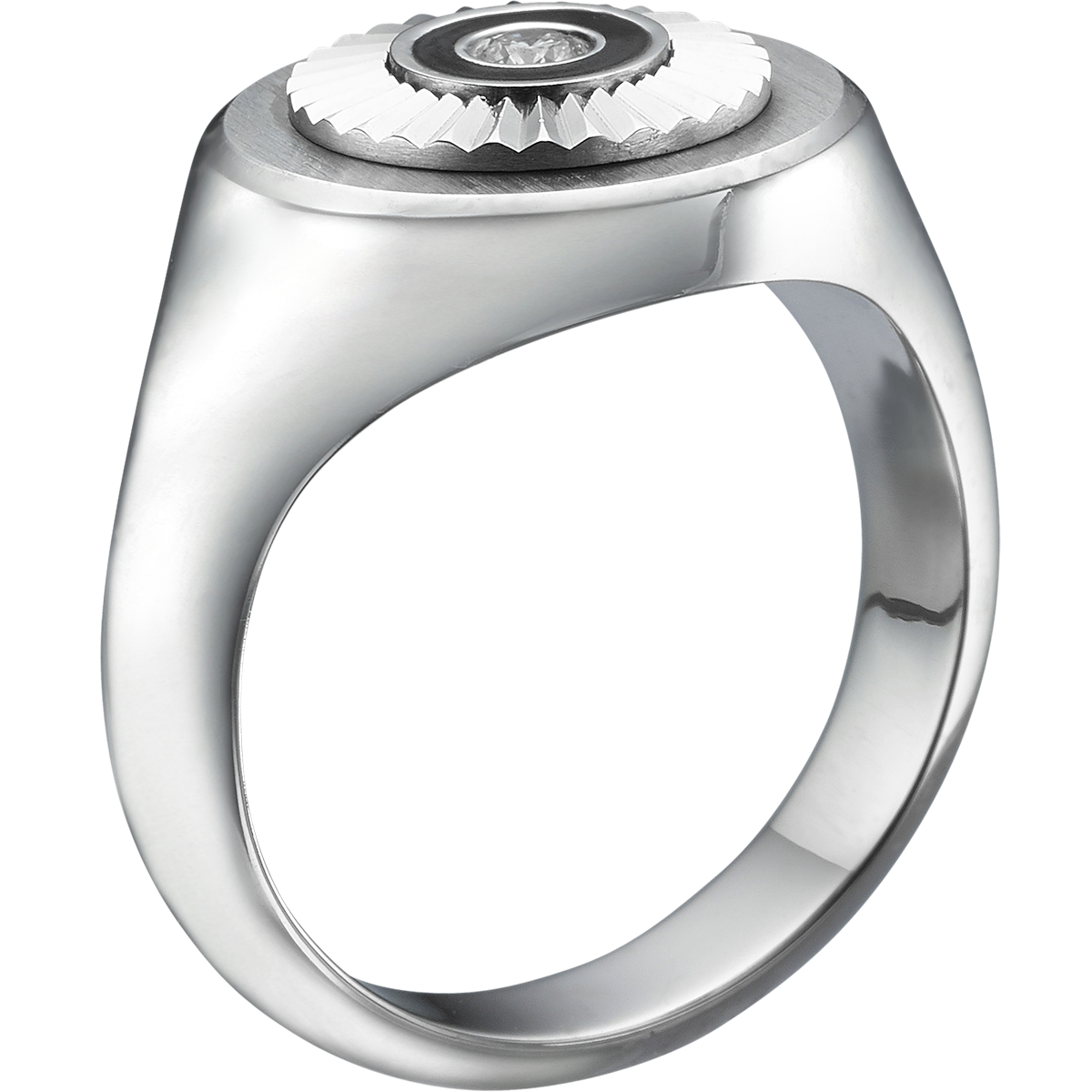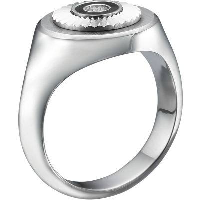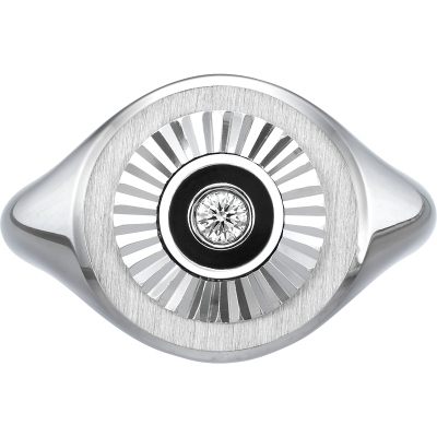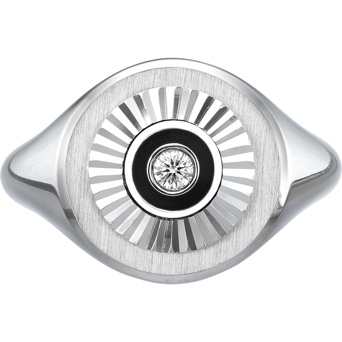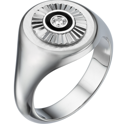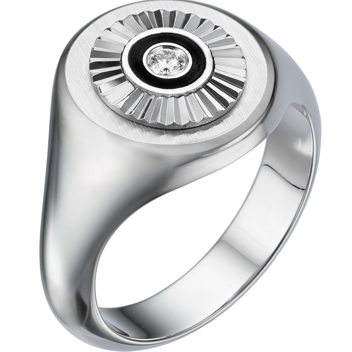 18K WHITE GOLD & BLACK ENAMEL RING