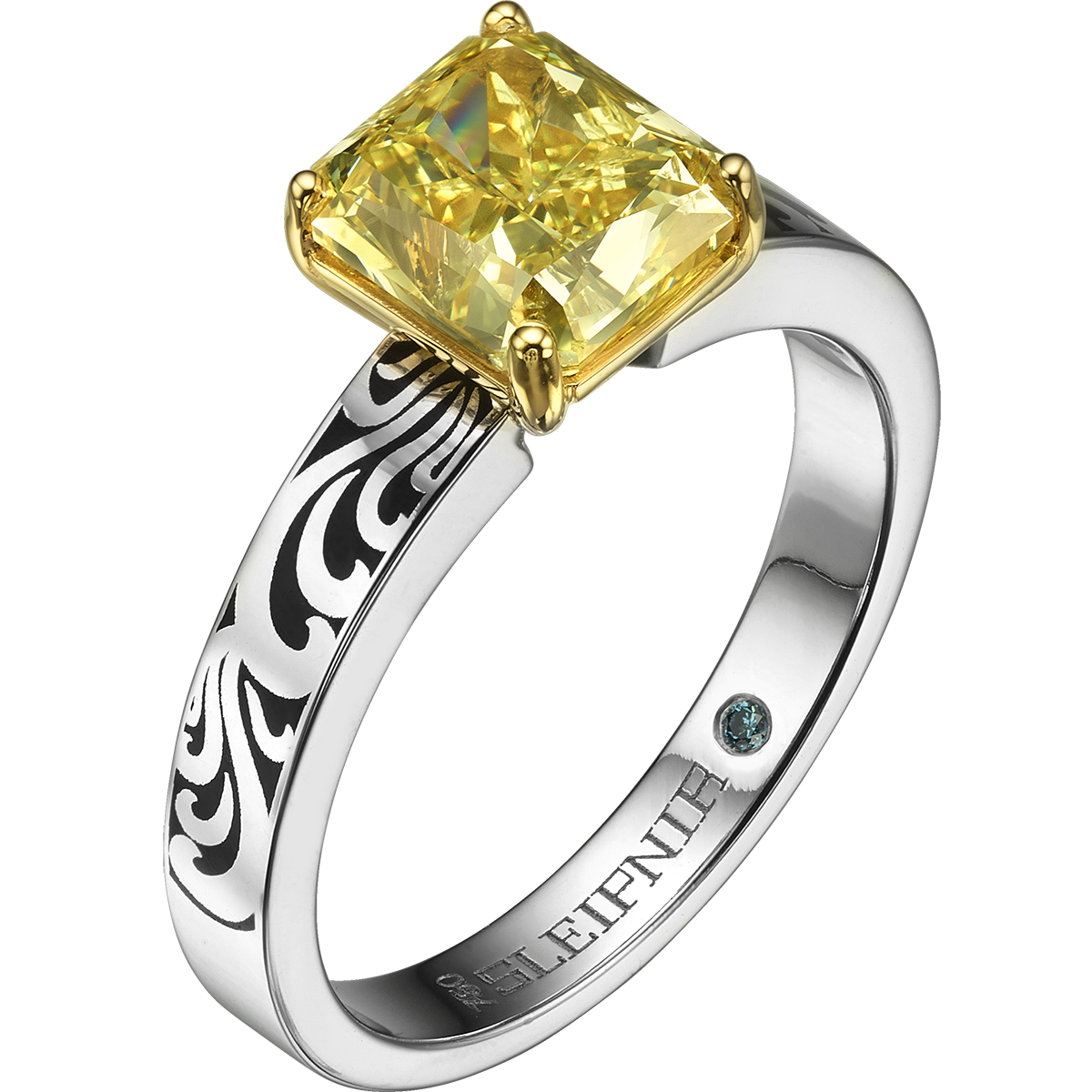 SLEIPNIR - 18K WHITE GOLD & BLACK ENAMEL ENGRAVING