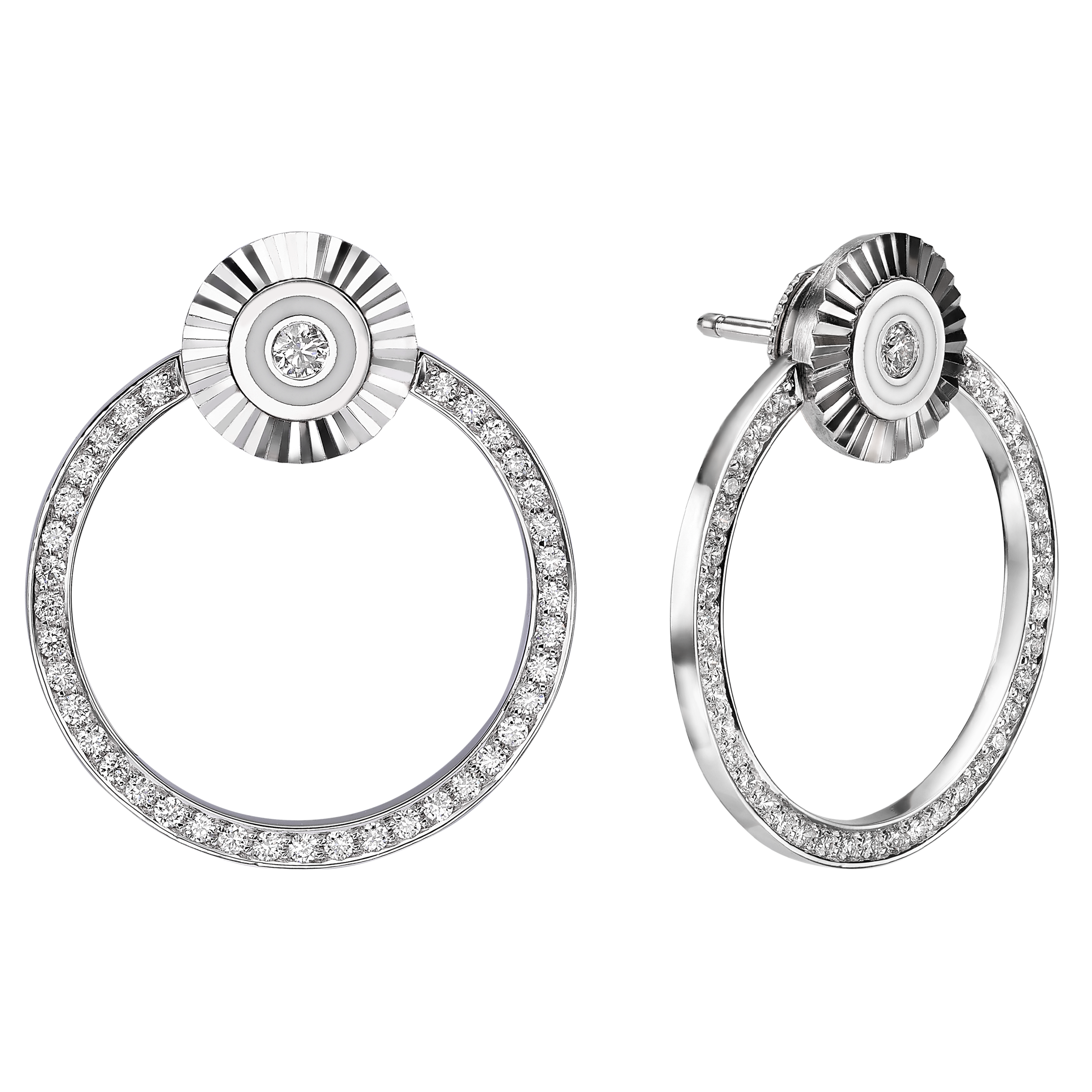 SLEIPNIR - 18K WHITE GOLD & WHITE ENAMEL EARRINGS